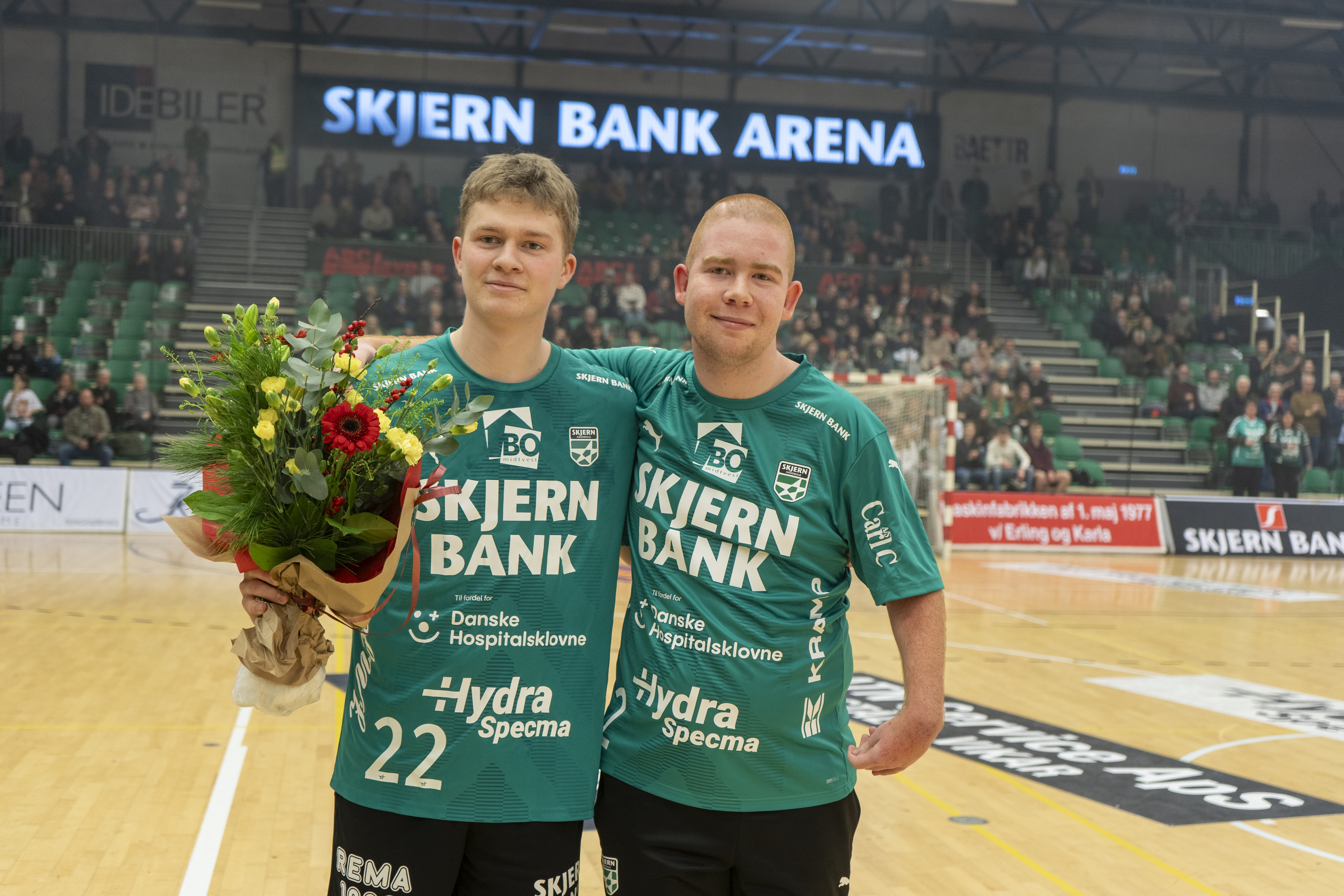 Thomas Klitgaard overrakte blomster til Jonathan Würtz på vegne af bagspillerens personlige sponsor, Det Faglige Hus, der ikke havde mulighed for at være til stede til lørdagens kamp.