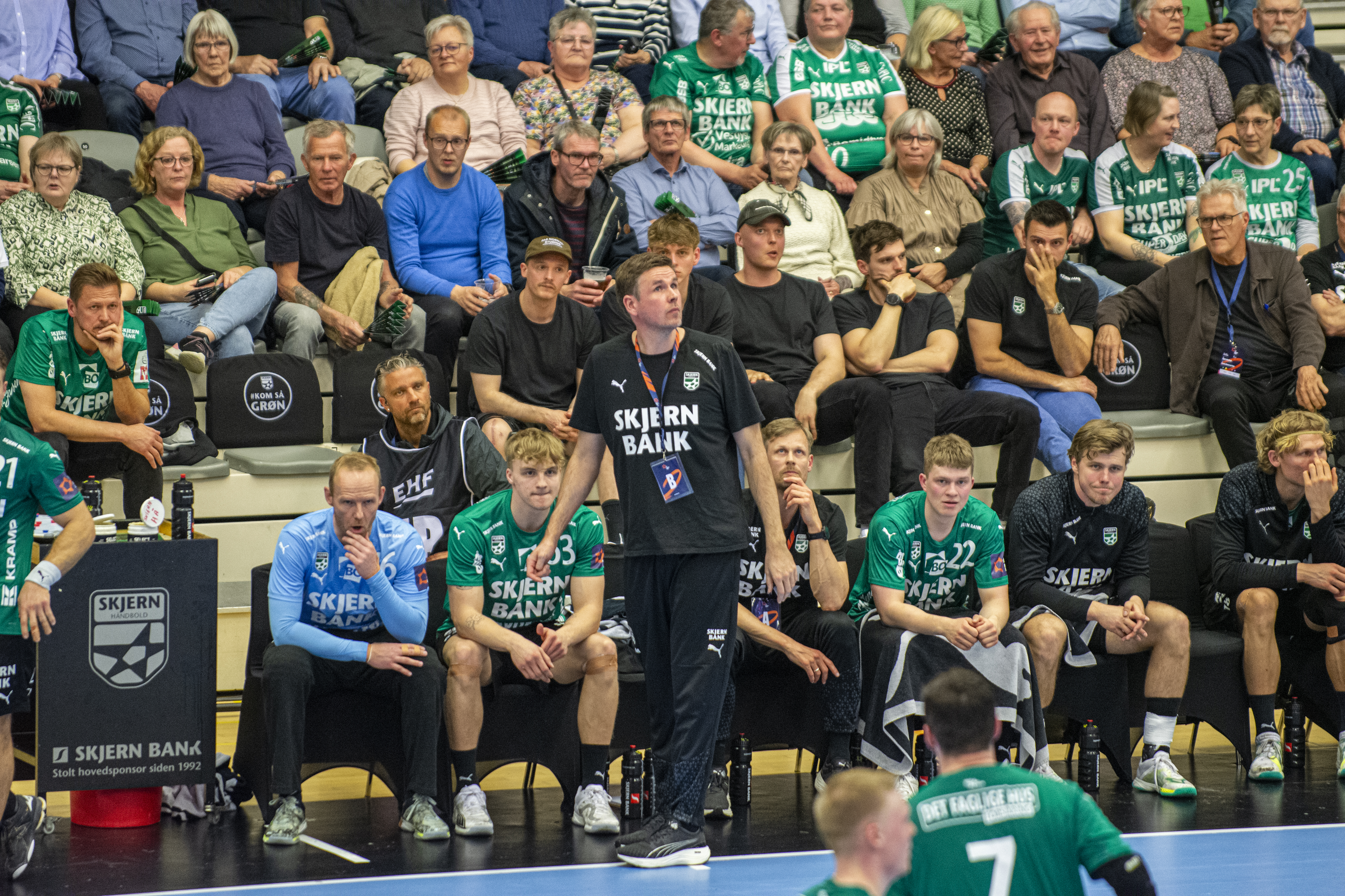 - Jeg er skuffet over vores første halvleg. Skuffet over, at vi fysisk ikke kunne stå bedre imod defensivt. Vi tilspillede os til rigtig mange gode chancer, men får dem slet ikke udnyttet ordentligt, og så blev forspringet for stort, siger Mathias Madsen, der trods kvartfinalenederlaget er stolt over Skjerns europæiske kampagne.