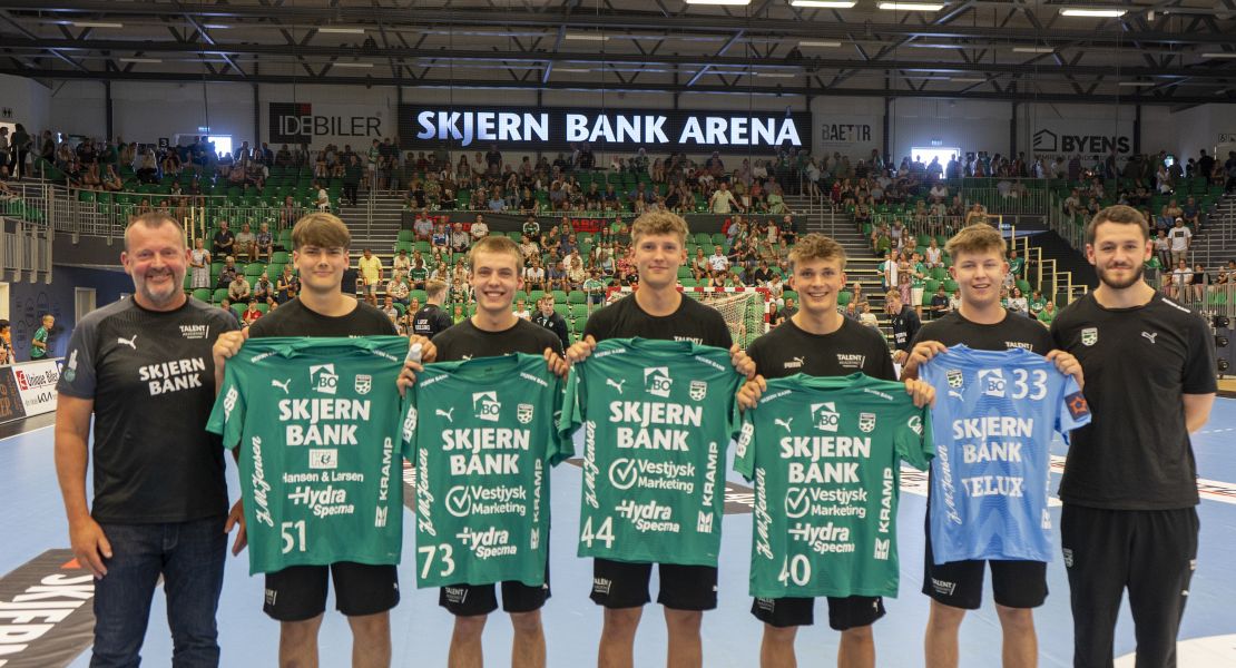 Direktør for talentakademiet, Jan Ole Kristensen, og talentchef i Skjern Håndbold, Magnus Siglev, overrakte derfor spillerne den kamptrøje, som de spillede i, da de for første gang fik debut for Skjerns bedste mandskab.