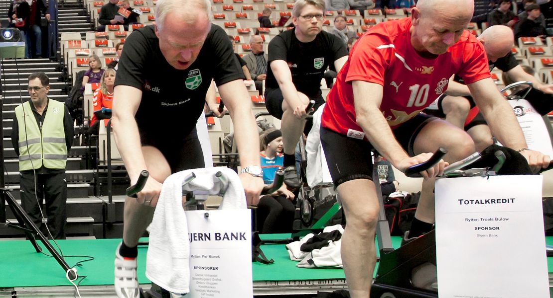Den 57-årige bankdirektør, der selv er en habil fritidscykelrytter, tog i sidste weekend sagen i egen hånd og hoppede på spinningcyklen for at køre kroner ind til Skjern Håndbold.