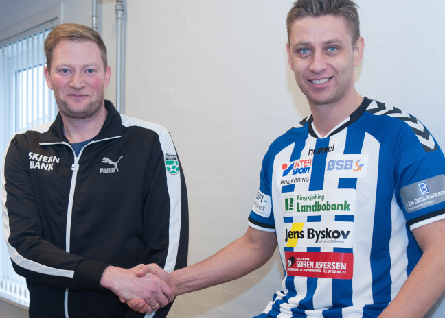 Han bakkes op af Skjern Håndbolds salgschef Søren Ostersen.