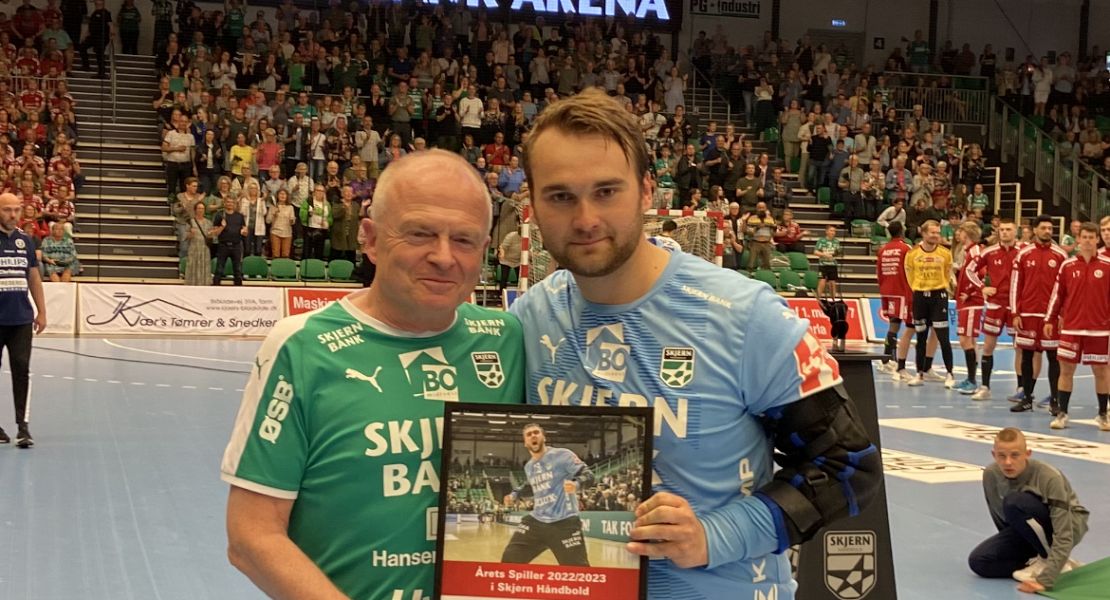 Inden onsdagens kampstart fik Christoffer Bonde overrakt beviset på hæderen som Årets Spiller af Skjern Bank-direktør Per Munck. Det er blot anden gang i klubbens historie, at en spiller vinder prisen to år i træk.