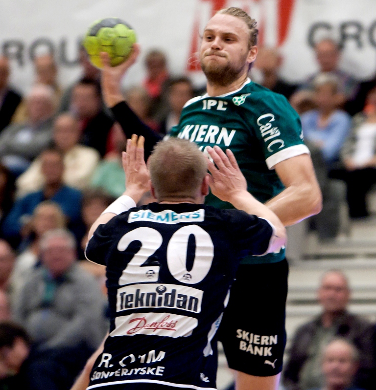 Henrik Møllgaard var storspillende med otte mål, da Skjern i efteråret slog Rune Ohm (billedet) og co. fra SønderjyskE med 33-20 i Skjern Bank Arena.