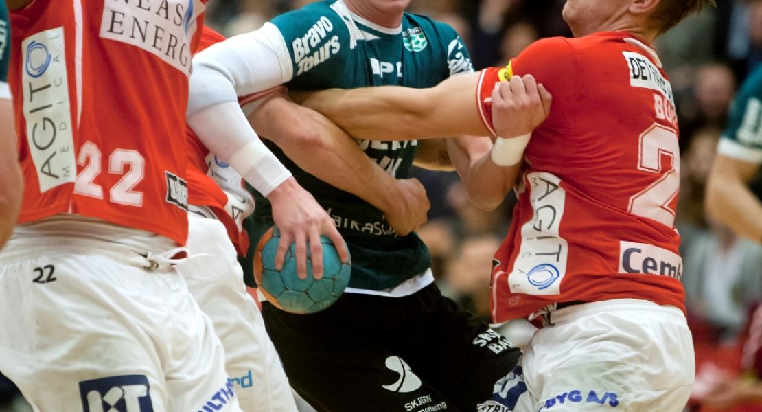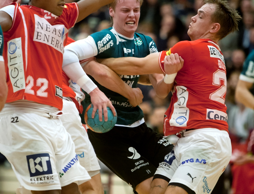 Bjarke Christensen i kamp mod Aalborg fra grundspilskampen i december, som Skjern vandt 35-20.