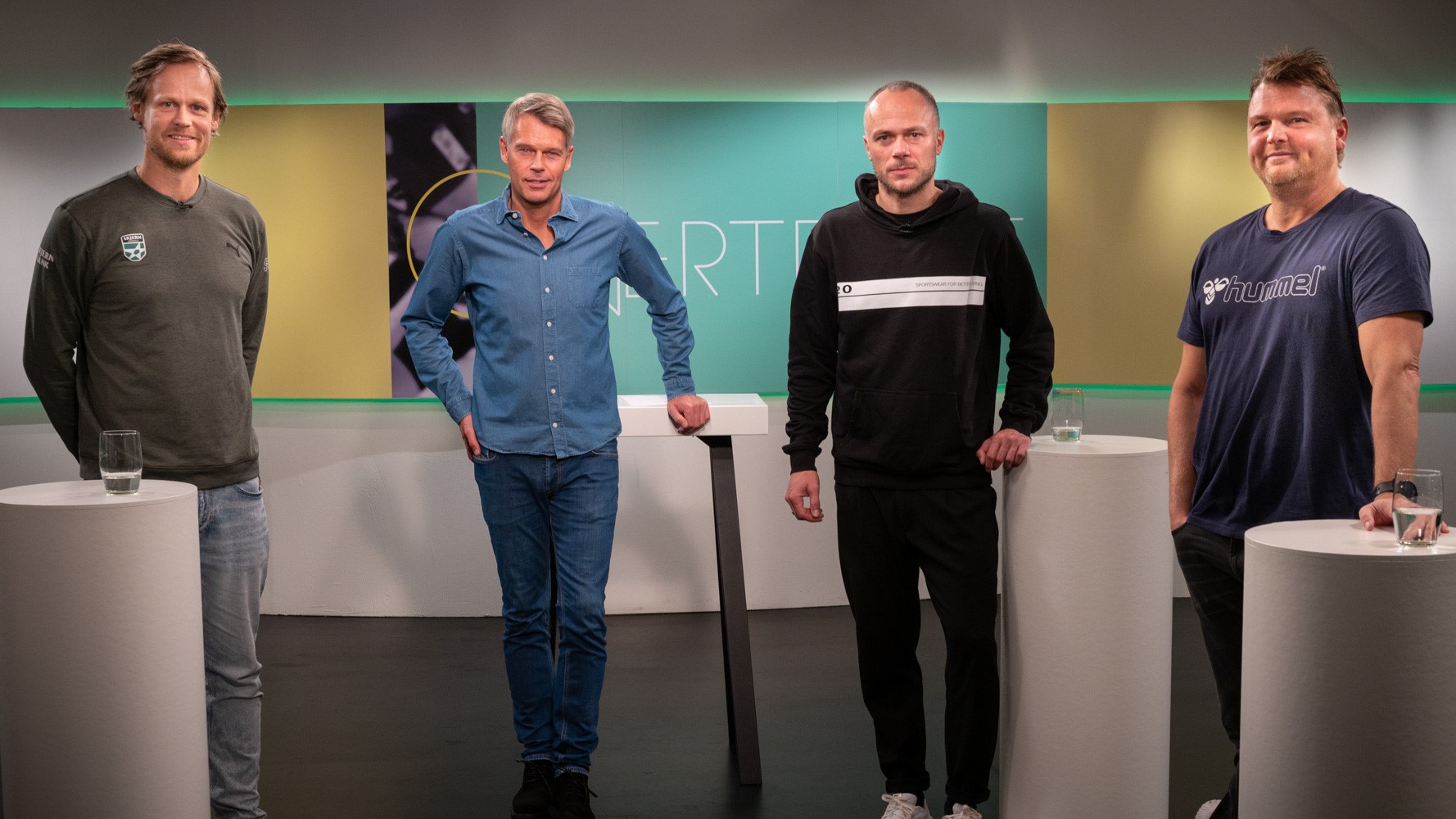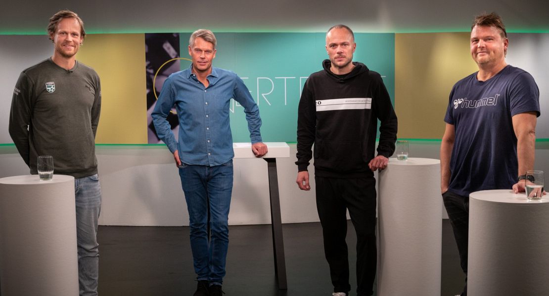 I aftenens program deltager (fra venstre): Kasper Søndergaard, Dan Sørensen(vært), Andreas Toudahl og Jan Paulsen.