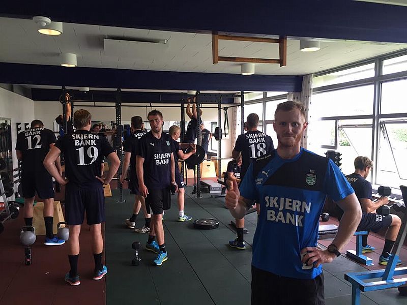 Hans Jensen i gang med at teste Skjern-spillernes fysisk i opstartsmånederne.