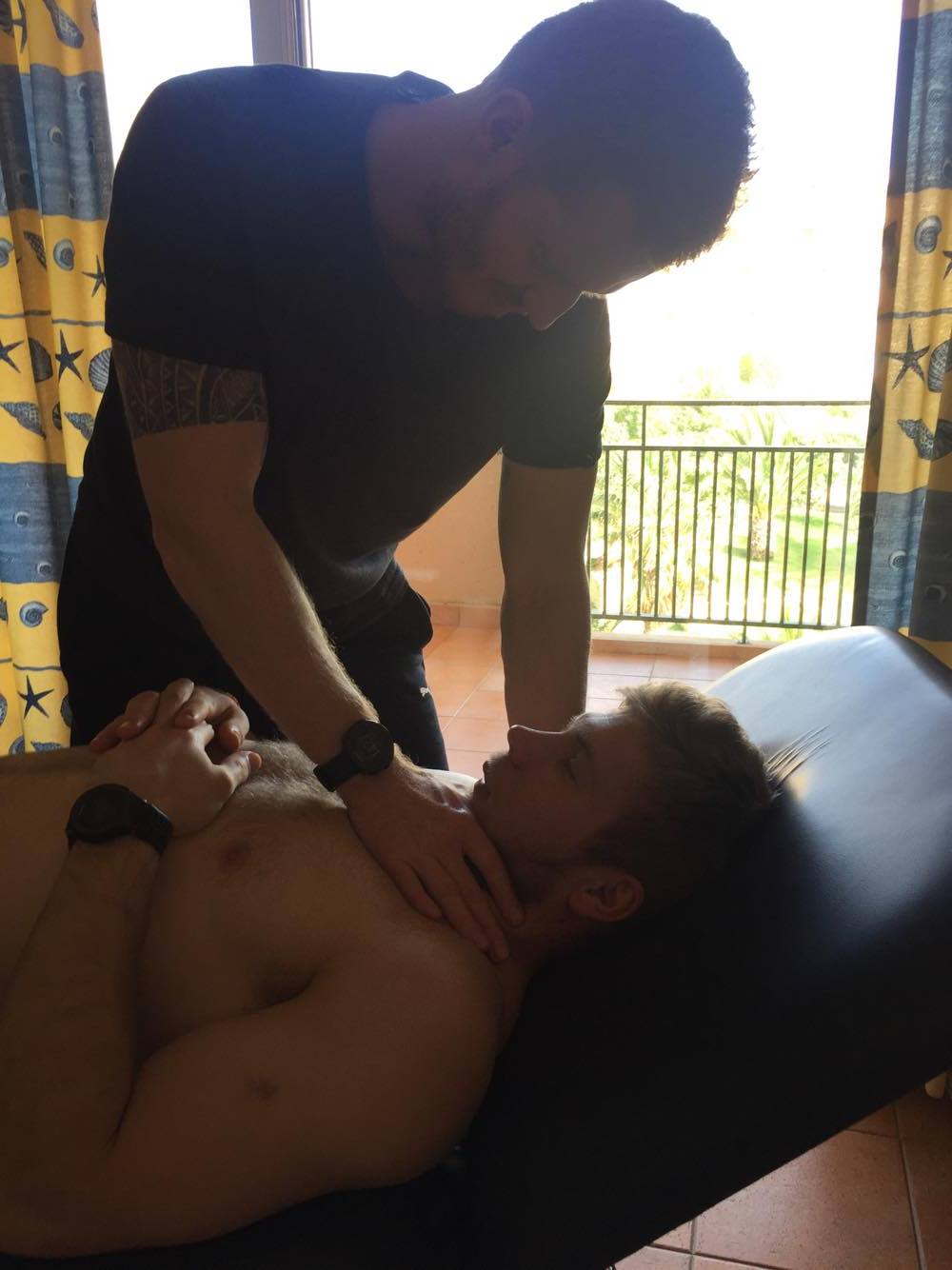 - Generelt behandler jeg altid skader, men hvis du er øm i kroppen efter træning, så har jeg kun ét svar: Ingen behandling, mere træning. Det er en tilvænningsproces, som er lang og gør ondt – men Bjarke kan bare spørge Thomas Klitgaard til råds. Den mand piver aldrig, fortæller Hans Jensen.