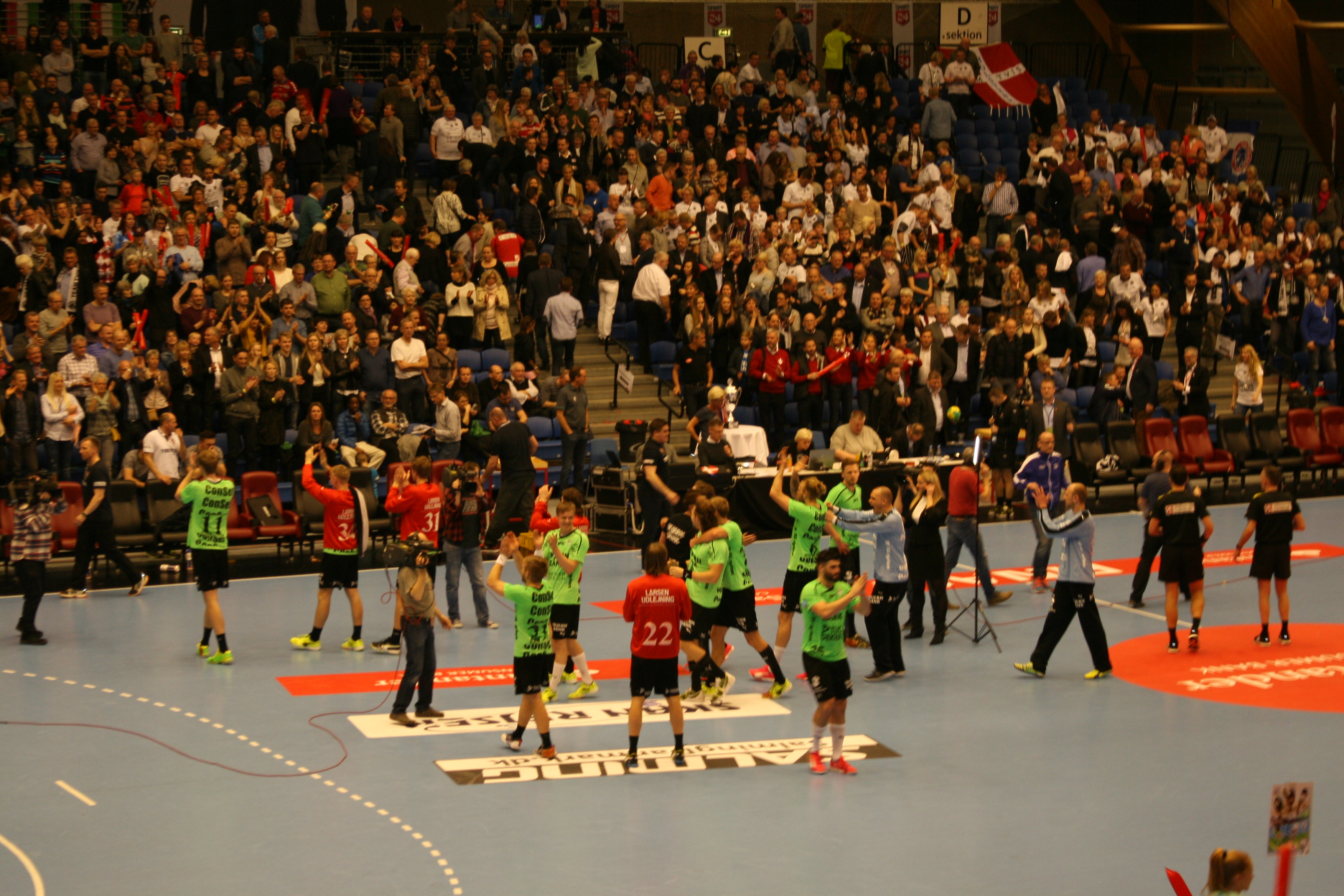Skjern-spillerne var glade for opbakningen i dag, og holdet håber endnu en fantastisk (grøn) kulisse i morgen.