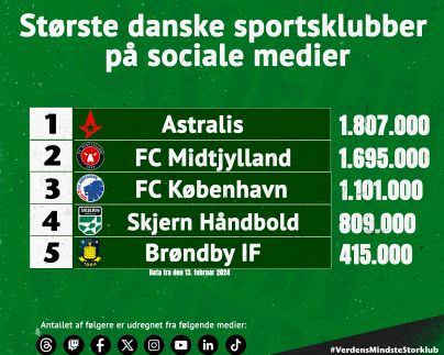 Med 809.000 følgere er Skjern Håndbold Danmarks fjerde største sportsklub på sociale medier.