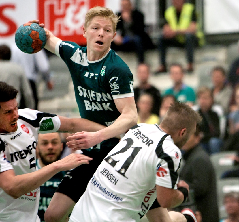 Henrik Møllgaard blev topscorer med otte mål, da Skjern besejrede Mors/Thy med 26-25 i den første bronzekamp.