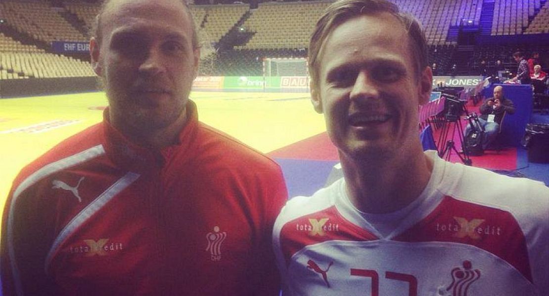 Henrik Møllgaard og Kasper Søndergaard fra EM i Herning i januar. De to Skjern-spillere er igen at finde i landsholdstruppen.