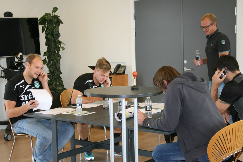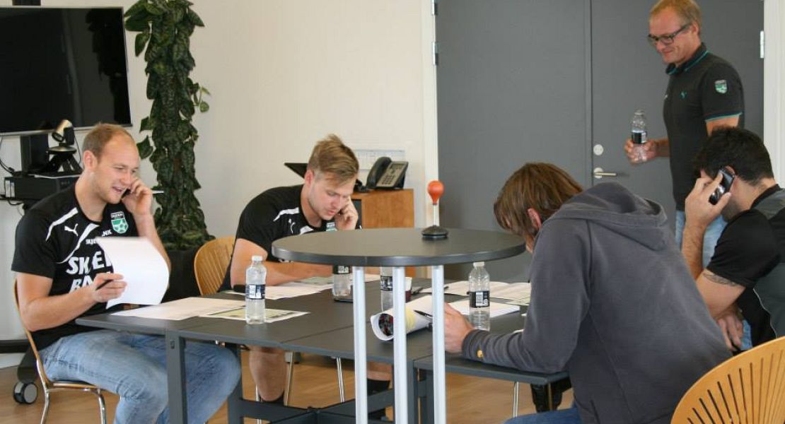Årsagen til opkaldet fra målmanden og de andre spillere skyldtes, at hele Skjern-truppen torsdag var på besøg hos hovedsponsor Skjern Bank, hvorfra der skulle sælges billetter til efterårets hjemmekampe.