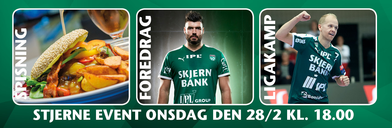 Cafe B burgere, foredrag v/Daniel Svensson og kampoplæg v/Thomas Klitgaard. Det er menuen, når Skjern Håndbold inviterer til Stjerne Event før topbraget mod BSV onsdag den 28/2.