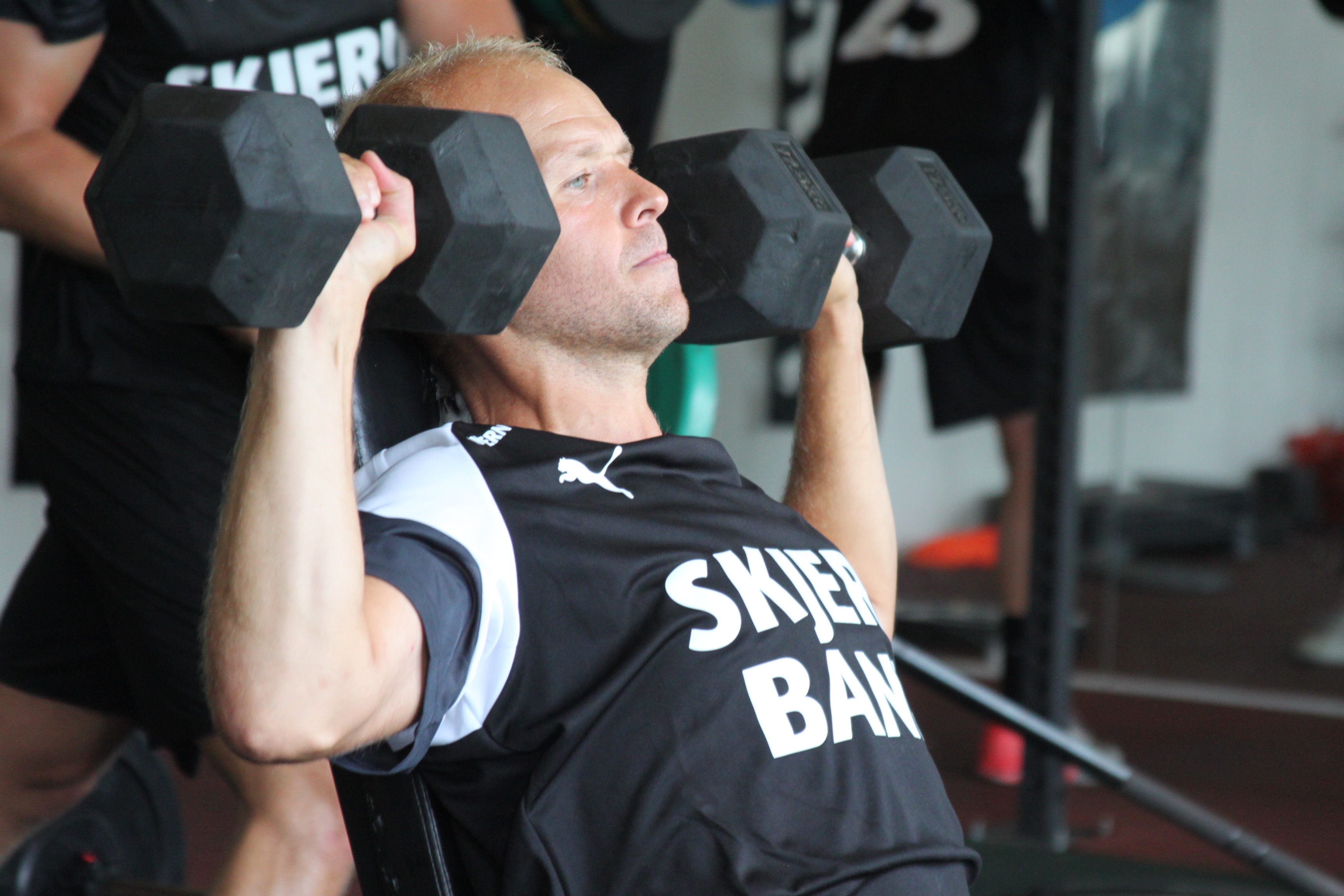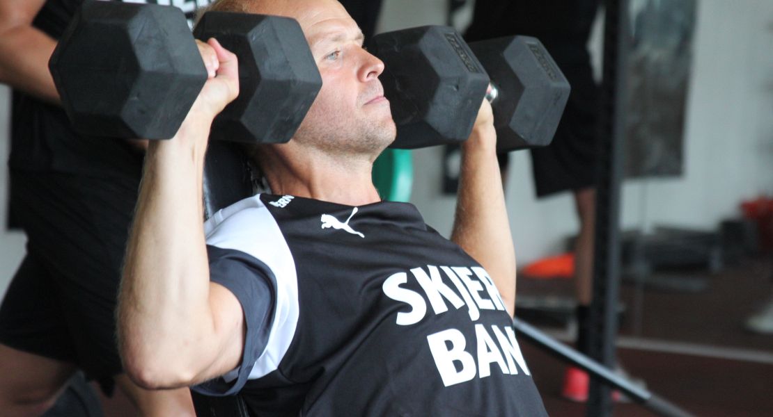 Eggert i fuld gang i styrkelokalet.