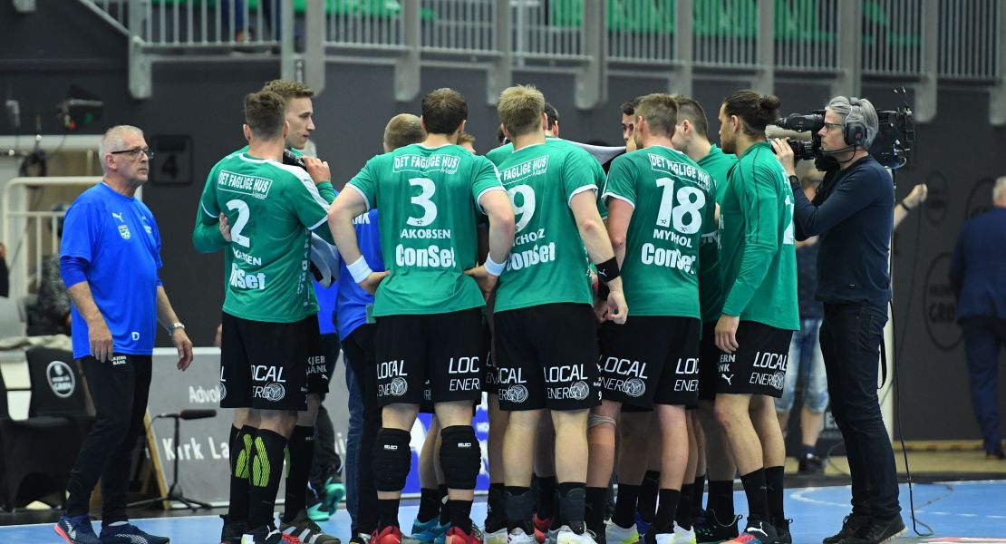 Skjern-mandskabet er med sejren á point med Aalborg Håndbold. Foto: Steffen Bloch