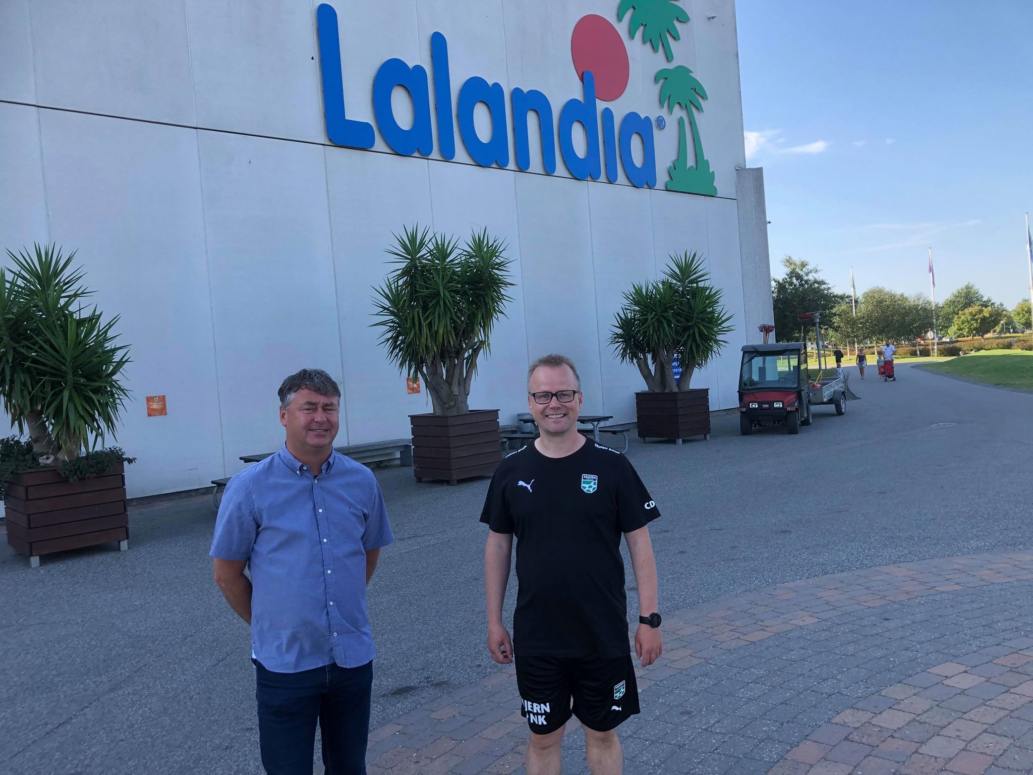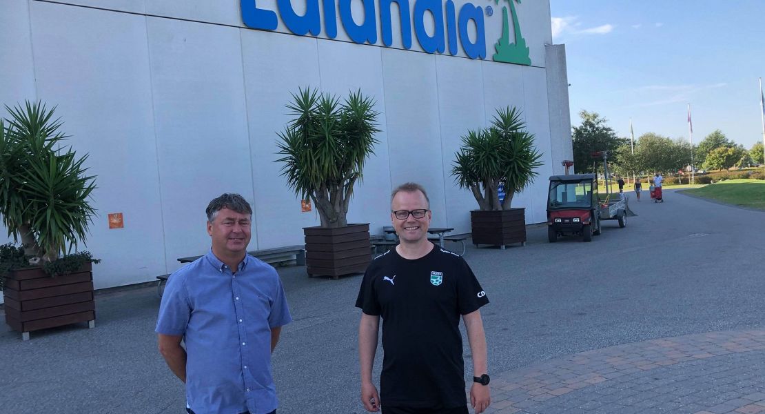 Thomas Hylle, som er aktivitetschef i Lalandia, byder Claus Hansen og resten af truppen velkommen.