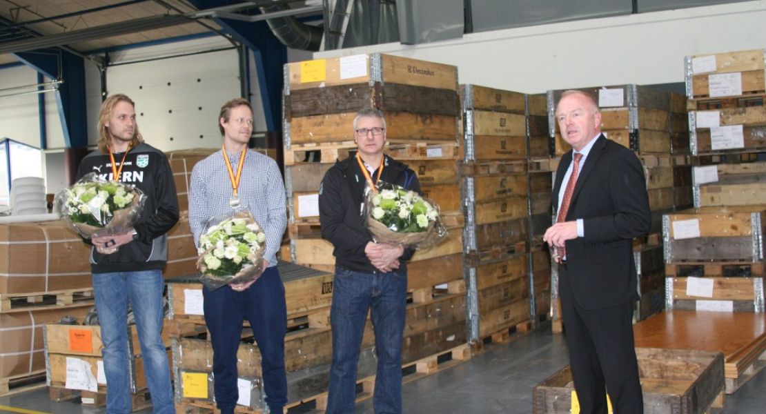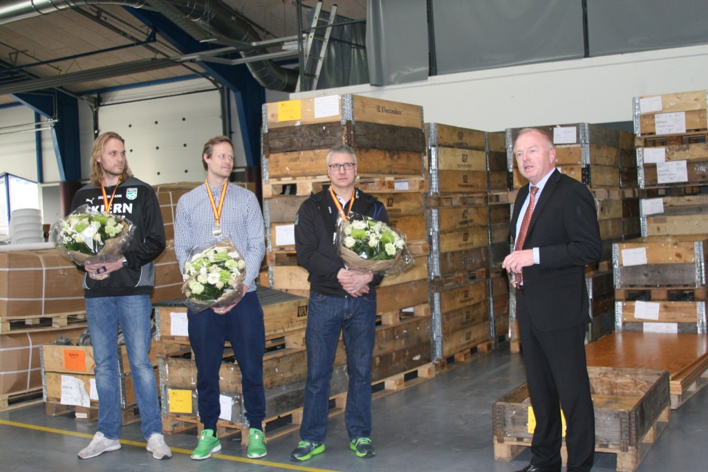 Personlig sponsor for Henrik Møllgaard, IPL Group i Lem, lagde tirsdag eftermiddag lokaler til, da VM-sølvvinderne Henrik Møllgaard, Kasper Søndergaard og John Bruun blev fejret.
