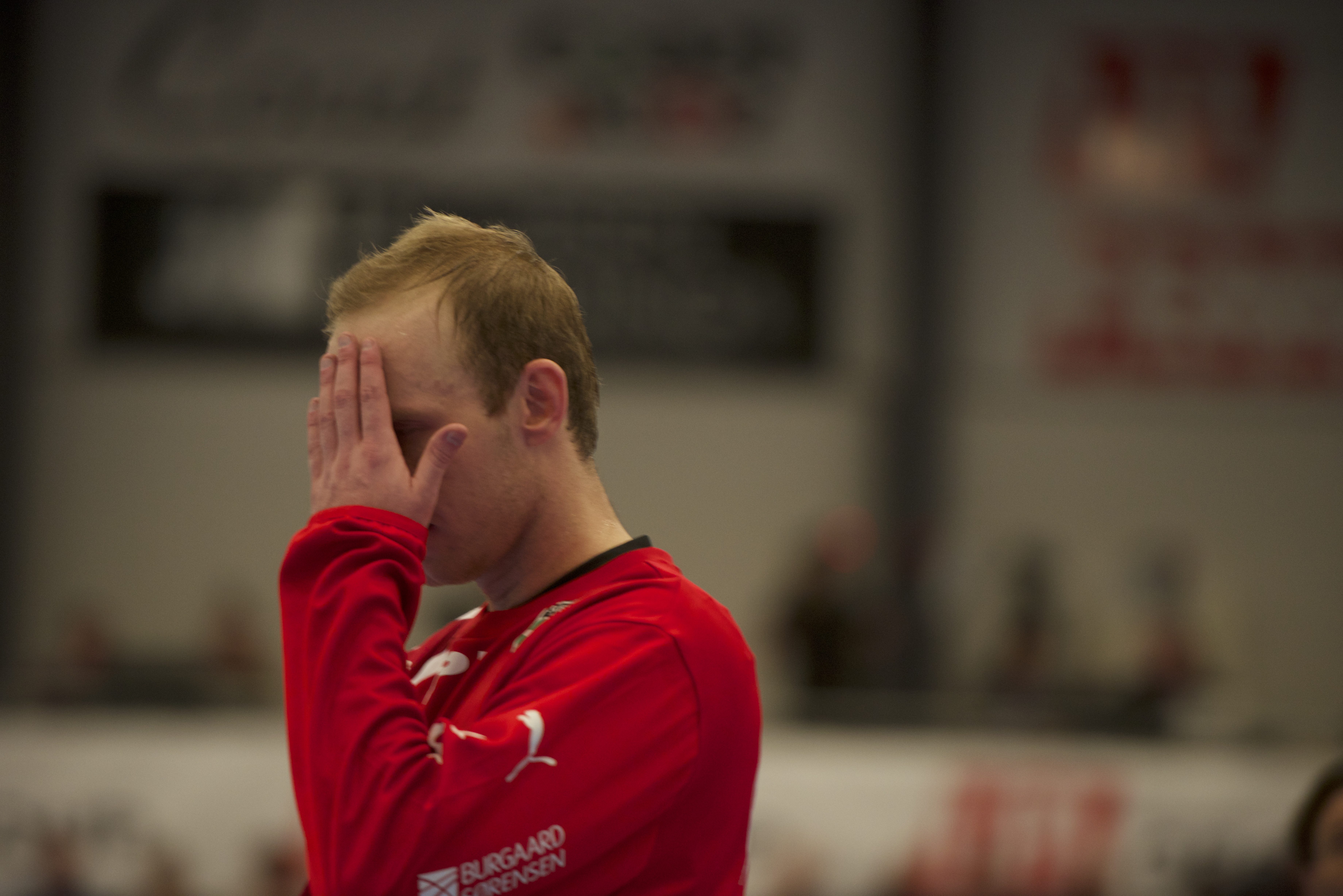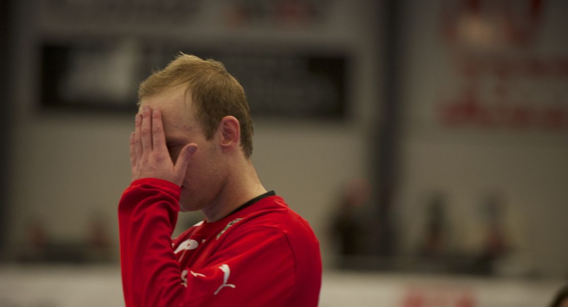 En skuffet Tim Winkler under søndagens kamp mod Montpellier. Foto: Steffen Bloch