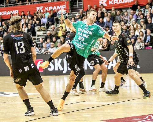 Kasper Søndergaard og resten af Skjern-truppen fik lørdag aften et point med hjem fra Aalborg.
