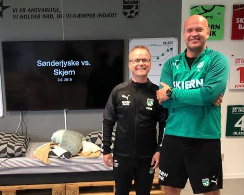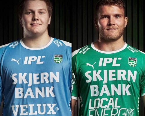 To Skjern-spillere på rundens hold