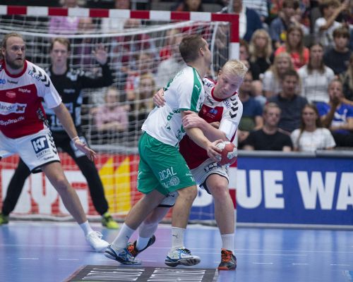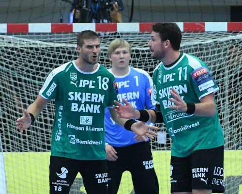 Jonathan Stenbäcken og Benjamin Jakobsen spillede store roller i Skjern-defensiven søndag aften i Celje. En kamp, som var enormt fysisk præget, siger de to.