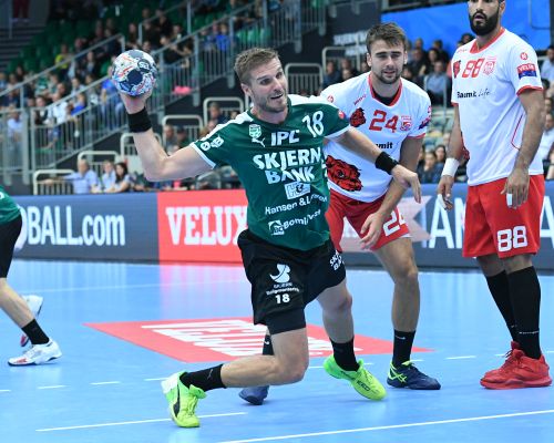 Sejr i Elverum og maksimumpoint i Gruppe C. Lørdag aften blev de norske mestre fra Elverum besejret med 32-27. Bjarte Myrhol topscorer med otte mål.