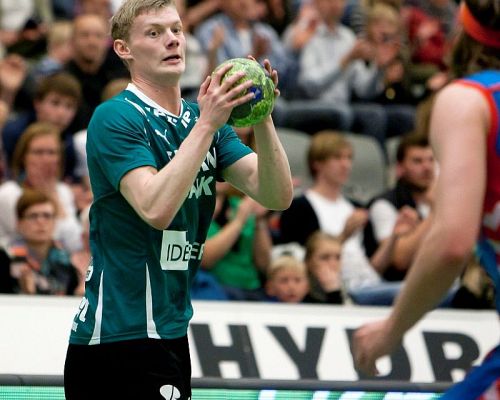 Alexander Nielsen var storskydende med ni mål, da Skjern torsdag aften vandt 33-26 over Århus i den sidste testkamp.